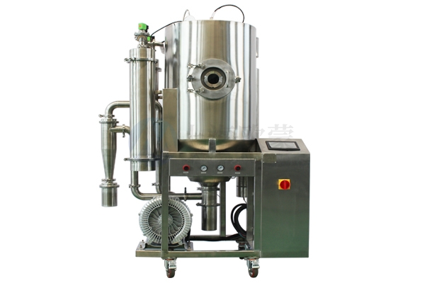 將溶液、乳液、懸浮液或漿料在熱空氣中噴射成細珠,從干燥室的頂部下降到底部,水將蒸發至產物,產物變成小顆粒產品。從干燥塔頂部引入熱空氣,同時通過高壓泵將物料液體泵送到塔頂,進料液通過壓力噴嘴變成細珠或小液滴。當液滴遇到高溫熱空氣時,水會立即蒸發,物料液在很短的時間內干燥成干燥的產品,產品從干燥塔的底部排出,或從旋風分離器中排出(取決于在配置上)。當熱空氣與液滴接觸時,溫度顯著下降,濕度大大增加,然后被排氣扇排出。空氣中的細粉將通過不同的分離裝置收集。有不同的細粉分離和回收裝置,如旋風分離器(普通型和各種組合型)、袋式過濾器、旋風+袋式過濾器、旋風+濕式洗滌器、袋式過濾器+濕式洗滌器等。我們應根據產品的特點和客戶的要求,選擇不同的細粉分離回收裝置。